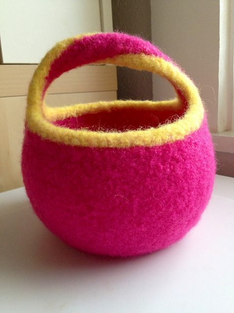I finally caught the felting bug. For years, I never understood why people would bother to knit something huge, only to have it shrink into something small. It always seemed counterproductive to me. If you want a small thing, knit a small thing. It’s faster. Now that I’ve caught the bug, I realize I completely missed the point. Felting wool is magical!